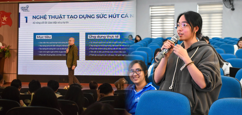 - Mr. Danny Vo – Chuyên gia Huấn luyện cấp cao tại PTE APAC Education. Anh chia sẻ gần gũi về tư duy học tập chủ động, cách phát triển kỹ năng ngôn ngữ gắn liền với mục tiêu nghề nghiệp, và những trải nghiệm thực tế giúp sinh viên tự tin hơn khi hội nhập quốc tế.