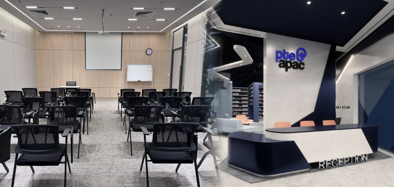 Không gian học tập hiện đại và tiện nghi tại PTE APAC Education, mang đến trải nghiệm học tiếng Trung chuyên nghiệp và thoải mái.