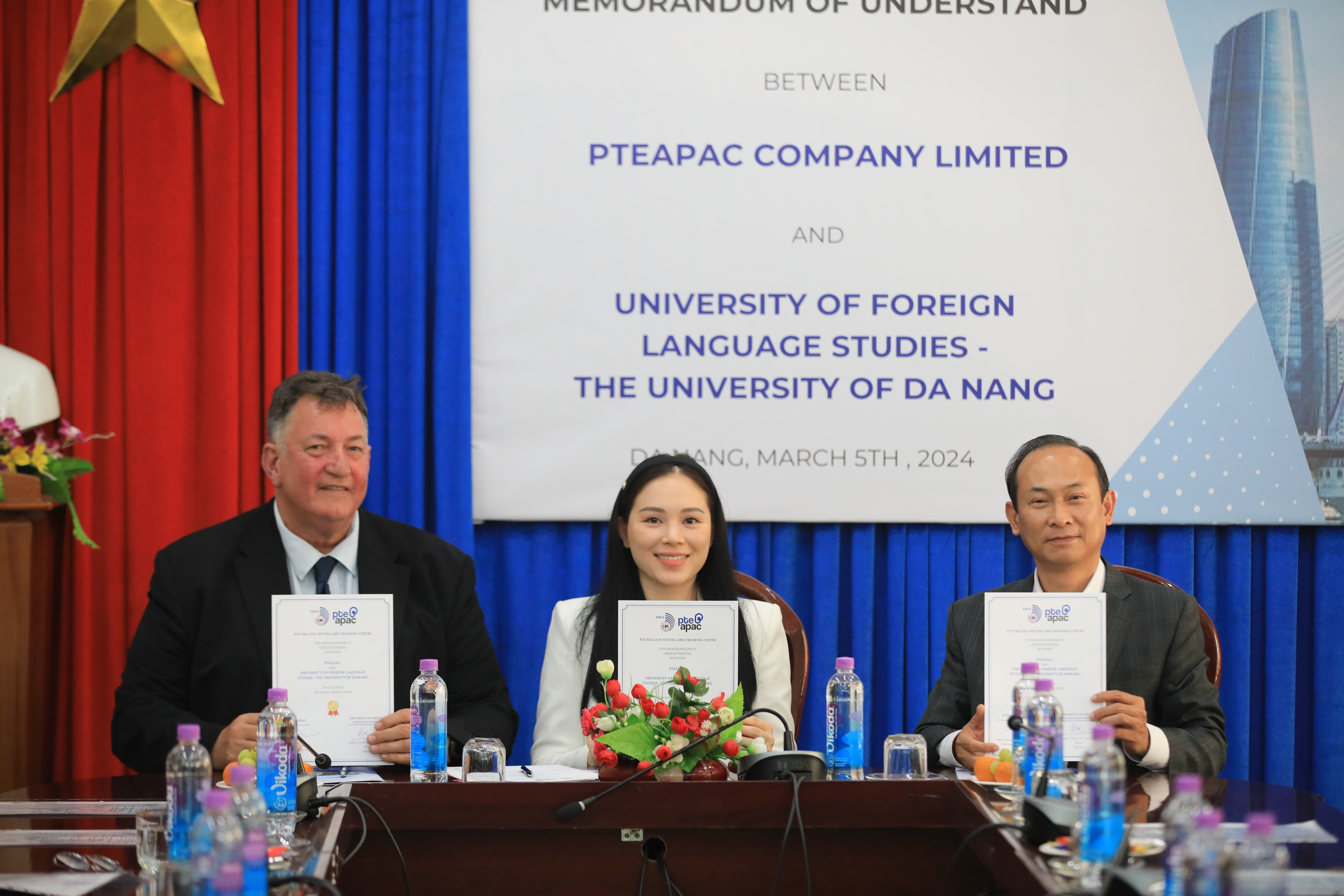 Vào ngày 05/03/2024, Trường Đại học Ngoại ngữ – Đại học Đà Nẵng đã ký kết một biên bản ghi nhớ hợp tác với Công ty TNHH PTE APAC – một công ty chuyên cung cấp dịch vụ hỗ trợ giáo dục, đặt trụ sở tại số 74 đường Bạch Đằng, phường Hải Châu I, quận Hải Châu, TP Đà Nẵng. Buổi lễ có sự tham dự của lãnh đạo hai bên, trong đó Hiệu trưởng Nhà trường, Trần Hữu Phúc, đánh giá cao ý nghĩa của hợp tác, nhấn mạnh rằng đây là sự kiện quan trọng mở đầu cho mối quan hệ và góp phần nâng cao đào tạo nguồn nhân lực ngoại ngữ tại miền Trung – Tây Nguyên. Đại diện PTE APAC, trong đó có Ngô Phương Linh (Tổng Giám đốc), cho rằng hợp tác này sẽ là nền tảng quan trọng để phát triển nhân lực tại khu vực miền Trung.